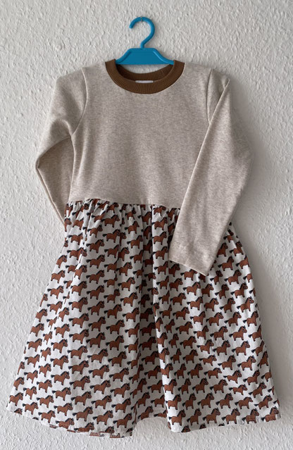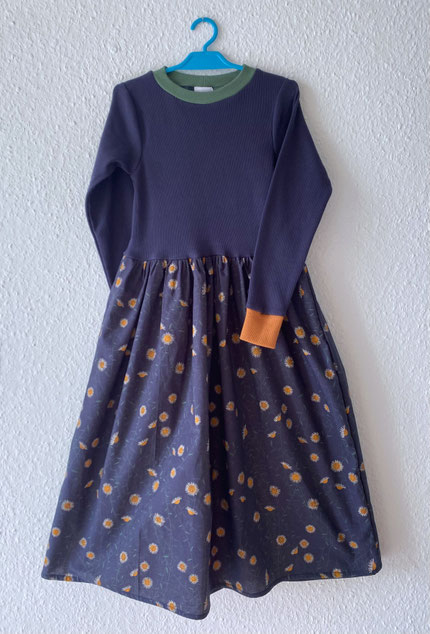 Dieses Kleid mit geripten Jersey Oberteil und gemustertem Rock aus fein gewebter Baumwolle ist perfekt zum spielen sowie für den Sonntagbesuch. Die Kontrastbündchen sind farblich zu den Rock