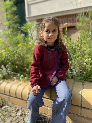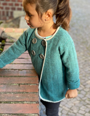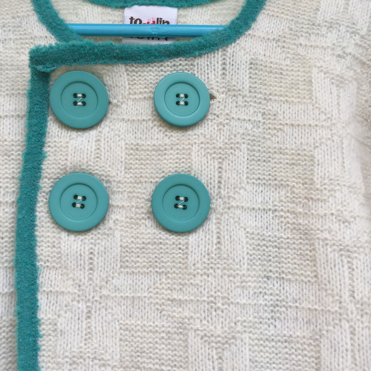 Die kuschelweiche Wahl zum Spielen im Garten an kühlen Tagen ist dieser 2-Reiher Cardigan aus Schurwolle mit Sternenmuster. Der Kontrastband und Knöpfe im Retrolook sind Gute-Laune-Bringer.